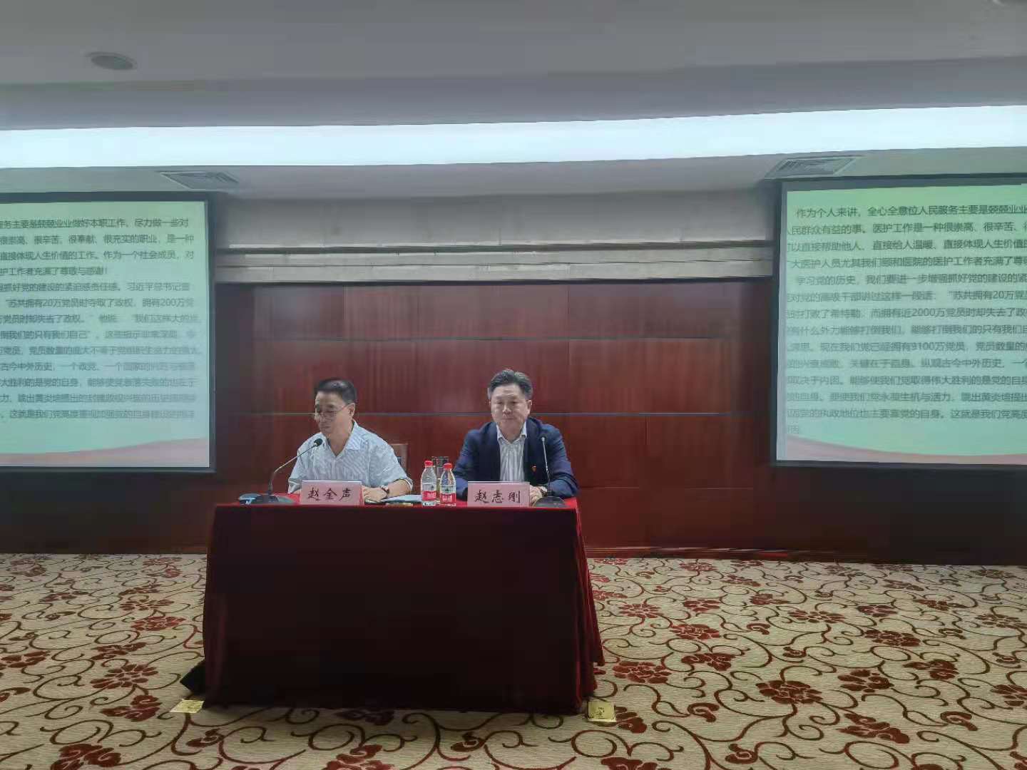 6月24日,鄭州頤和醫院舉辦了慶祝建黨一百周年黨史學習教育專題講座。會議特邀原河南省軍區政治部主任、副政委趙金聲少將,作「中國共產黨的根本特徵與精神品格」專題講座。鄭州頤和醫院黨委書記趙志剛及醫院黨委、紀委委員、各總支、支部書記等200餘名黨員同志參會。會議由趙志剛書記主持。