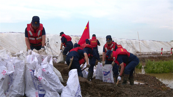 連日來,受黑龍江幹流與呼瑪河水位迅速上漲共同疊加影響,黑龍江三道卡站水位上漲迅猛,漫出堤壩超2公里,國道G331水漫路面,無法通行。百姓出行、急救運輸、防汛保障都成了難題。險情就是戰場,接到支隊部署命令後,大興安嶺森林消防支隊呼瑪大隊第一時間組成黨員帶頭的120人先鋒隊趕往現場,經過五天的奮戰,和其他救援隊伍的戰友們共同築起長約2公里的臨時堤壩,確保了生命通道的臨時暢通。在抗洪救災的現場,用汗水書寫了「對黨忠誠、紀律嚴明、赴湯蹈火、竭誠為民」的訓詞精神,用實際行動踐行了為民初心。