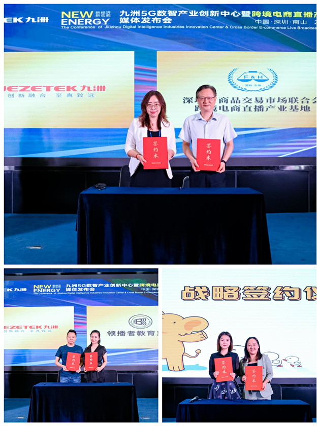 6月25日,深圳九洲5G數智產業創新中心暨跨境電商直播產業基地直播發佈會在深圳舉行。深圳市商務局、九洲電器、商協會、行業智庫專家、簽約入駐企業、創業投資機構、銀行業的代表通過「線上線下」方式參與。