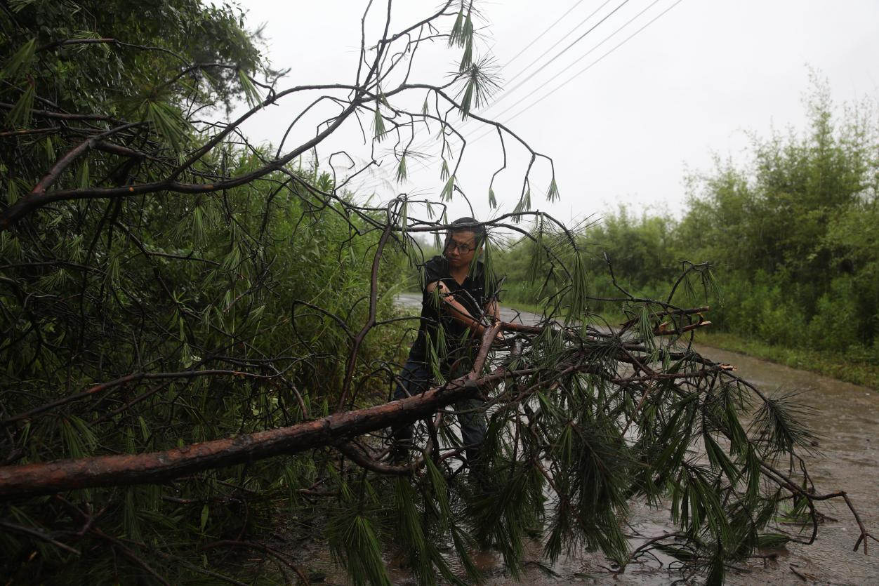 6月27日,在安徽黃山市屯溪區奕棋鎮博村沿山公路上,一顆樹木因雨勢過大而倒在路中間。奕棋鎮工作人員發現後第一時間組織人員對倒塌的樹木進行砍伐和清理,確保道路暢通。