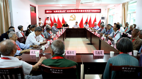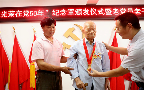 6月27日,安徽歙縣森村鄉舉辦“光榮在黨50年”紀念章頒發儀式暨老黨員老幹部座談會,50名50周年以上黨齡的黨員戴上紀念章。