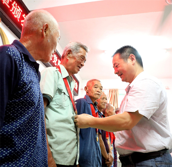 皖歙縣:深山老黨員戴上“光榮在黨50年”紀念章