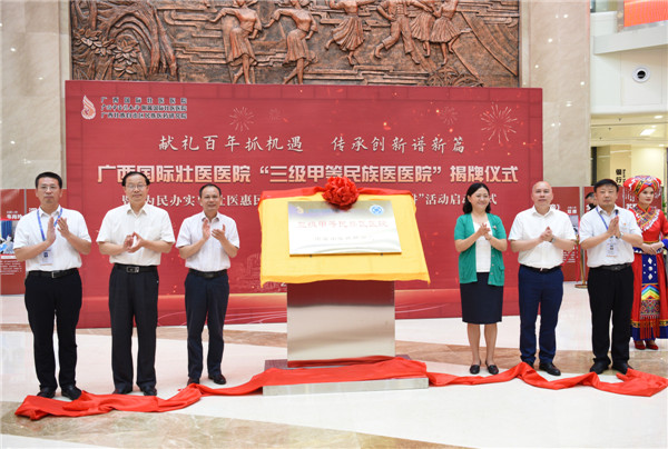 6月29日,廣西國際壯醫醫院「三級甲等民族醫醫院」揭牌暨「為民辦實事-壯醫惠民八桂行」「博士講團公益巡講」活動啟動儀式在南寧舉行,這也是廣西首家「三級甲等民族醫醫院」。