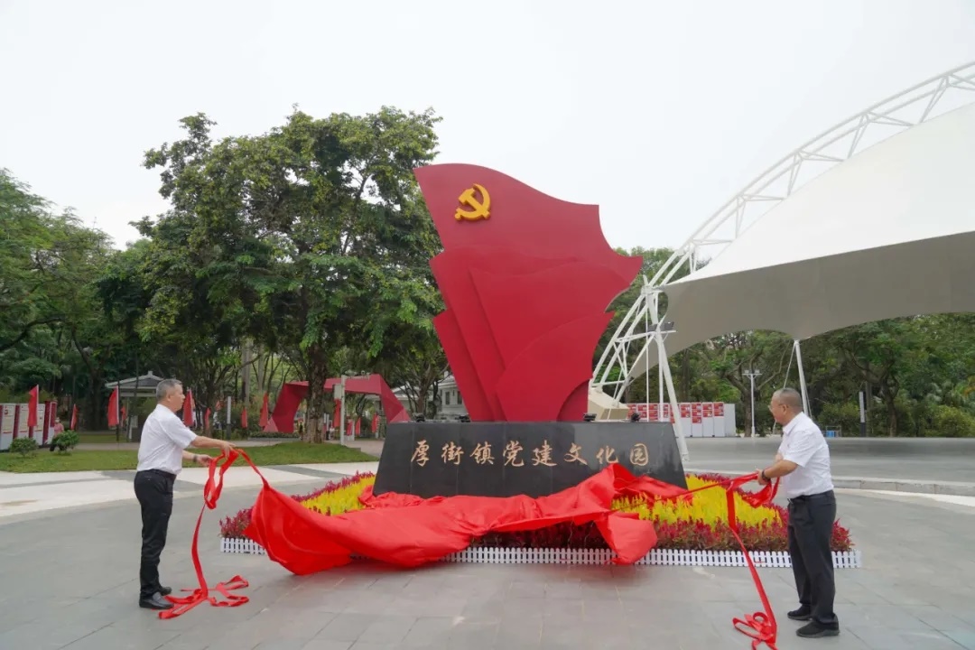 新落成的厚街黨建文化園位於體育公園內,佔地面積12000平方米。當天上午9時,厚街鎮委書記黎壽康和厚街鎮長葉可陽等領導班子成員共同為厚街鎮黨建文化園雕塑揭幕。