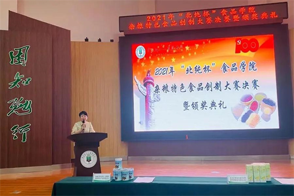 「北純杯」食品學院雜糧特色食品創製大賽由共青團黑龍江八一農墾大學委員會主辦,黑龍江北純農產品開發有限公司贊助,旨在為學生提供展示科技創新平台,提高食品學院各專業學生創新創業能力的技能大賽。