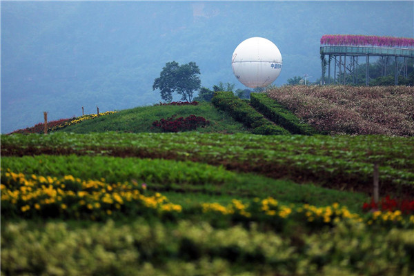 位於清溪河與長江交匯處的國家AAAA級旅遊景區花田酒地,由瀘州老窖集團圍繞茶、酒文化打造,目前已建成1000畝花田、玻璃棧道、金樽福塔、探花橋、龍門堤等景觀。站在千畝花田中,遙見金樽福塔高聳入雲,塔身通體呈現流光之色,耀眼奪目。以該景致為靈感,中國四川美術家協會會員、黃河口油畫雕塑研究院名譽院長崔治中創作了一幅滿意的油畫。「這個景區的打造充分運用了自身原有的自然風光,只是增加設施,沒有更多去破壞,保護生態的同時,也對遊客具有吸引力。」崔治中對納溪開發自然景區的方向、做法表示認可。