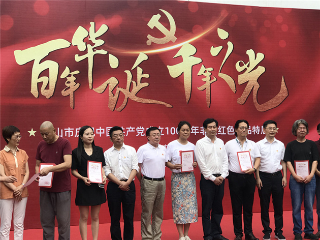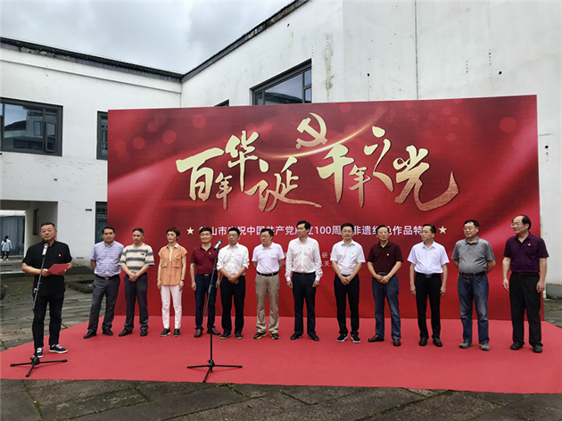 6月30日,由黃山市非遺研究會、中共黃山市市直機關工委聯合舉辦的以“百年華誕千年之光”為主題的黃山市慶祝中國共產黨成立100周年非遺紅色作品展,在安徽黃山市非遺研究會展廳展出。
