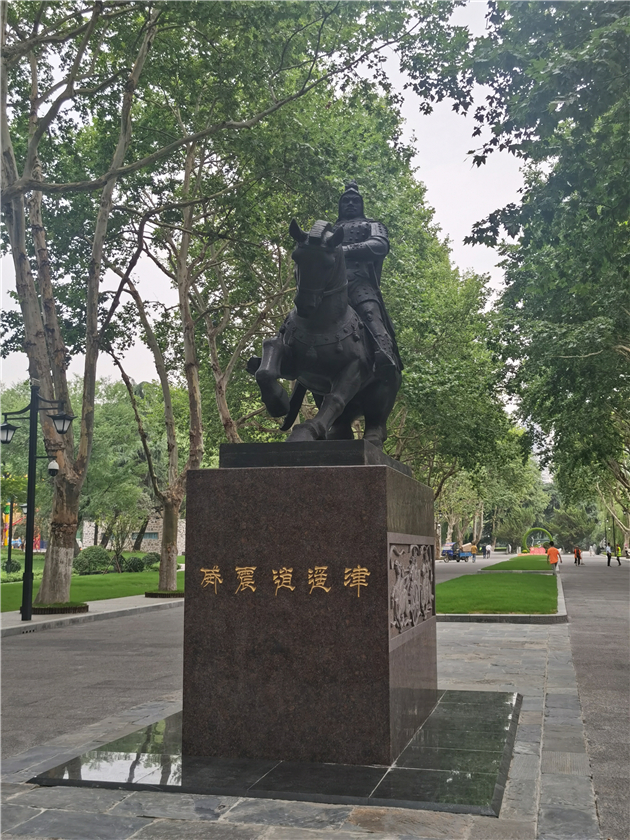 記者看到,公園南大門為三開間牌樓,黃牆斗拱,上懸匾額為清代狀元陸潤庠書寫的台閣體「古逍遙津」。該負責人還介紹,提升改造後逍遙津公園向城市敞開,拆牆透綠,對接步行街,呼應教弩台,成為公園向城市敞開的名片。