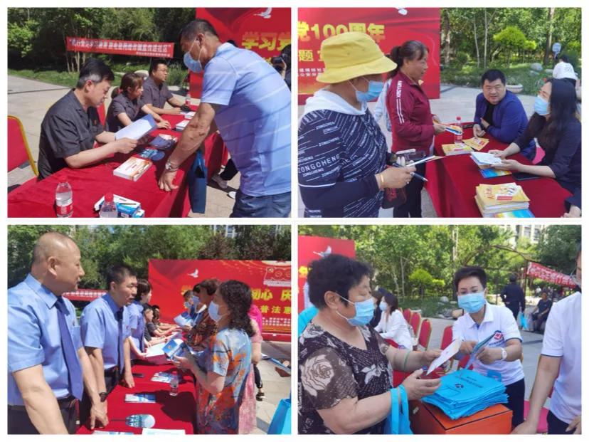 為深入開展全民普法宣傳教育,提高群眾的知法守法意識,維護轄區和諧穩定。6月22日,香坊區新香坊街道結合黨史學習教育「我為群眾辦實事」實踐活動,聯合香坊區委政法委、香坊區人民檢察院、香坊區人民法院、香坊區司法局、香坊區公安分局幸福派出所、黑龍江博潤律師事務所及哈爾濱香坊區幸福村鎮銀行等單位,在金源藍城小區廣場開展了普法惠民主題宣傳活動。活動共計向70餘名群眾提供了免費法律諮詢服務,派發宣傳資料600餘份。有力地提高了廣大群眾的法治意識、防範意識,得到了廣大群眾的熱烈響應。