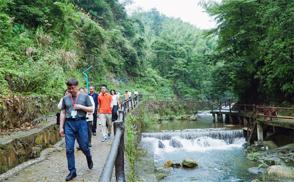 在明月山風景區棲隱谷,枕溪而眠、鳥巢聽雨,園區內溪流潺潺、鳥鳴深澗、繁花似錦,考察團一行體驗了步步驚心、玻璃漂流等娛樂項目,歡聲笑語不斷,感受到在山林間戲水嬉鬧、回歸自然的快樂。