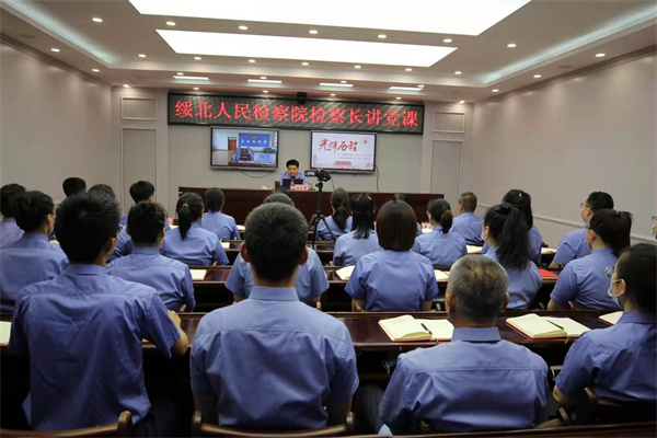 星星之火,可以燎原。為慶祝中國共產黨成立100周年,充分發揮黑龍江省綏北檢察院領導班子在黨史學習教育中的帶頭示範引領作用,弘揚紅色革命精神,推動綏北人民檢察院黨史學習教育走深、走實。近日,綏北人民檢察院黨組書記、檢察長劉慶峰以《光輝歷程—中國共產黨的一百年(1921年—2021年)》為主題,為全院幹警講了一堂別開生面的黨史課,將綏北院「領導班子講黨課」系列活動推向高潮。