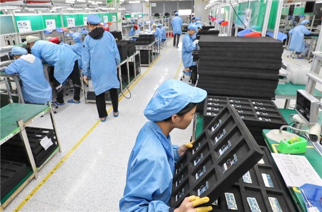 廣東美晨通訊有限公司生產車間工人正對產品進行檢驗