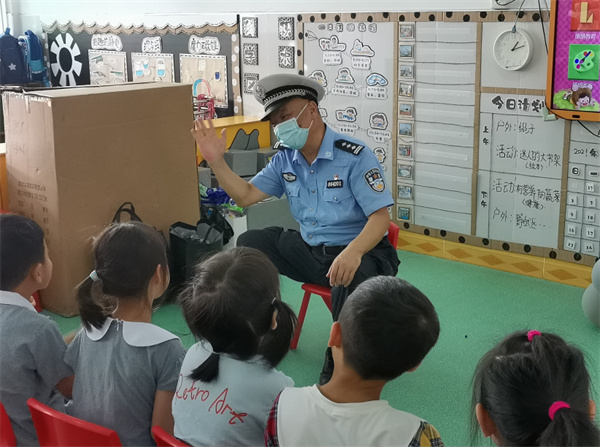 活動中,宣傳民警以交通安全出行常識、典型交通事故案例為主要內容,結合八月起騎電動自行車不佩戴安全頭盔罰200元的新規,重點落在佩戴好頭盔、系好安全帶、過馬路要走斑馬線看紅綠燈、未滿12周歲不得騎自行車上路、未滿16周歲不得駕駛電動自行車等。活動期間,宣傳民警還走進課室與同學們提問互動,提醒同學們在暑期出行過程中要提高交通安全意識,注意遵守交通規則,文明安全出行,同時要把道路交通安全知識帶回家,「小手」牽「大手」,讓家長和孩子們一起度過安全快樂的暑假。