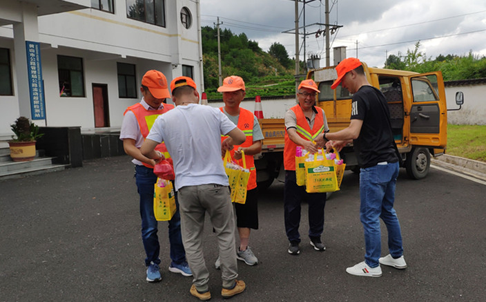 烈日當頭,公路上一線養護職工依然堅守崗位,用他們辛勞的汗水確保道路安全暢通。為進一步做好夏季高溫防暑降溫工作,切實關心關懷職工的身體健康,7月9日,黃山市公路中心黟縣分中心工會組織為高溫下堅守在公路建設、養護管理的一線職工送去綠豆、毛巾、水杯、風油精、清涼油等防暑降溫物品。