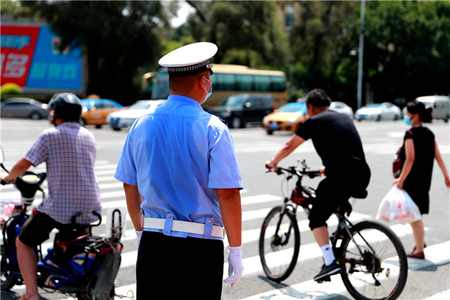 連日來,天氣持續炎熱高溫,街面上巡邏民警頂着高溫、冒着酷暑,默默堅守崗位,奮戰在一線。