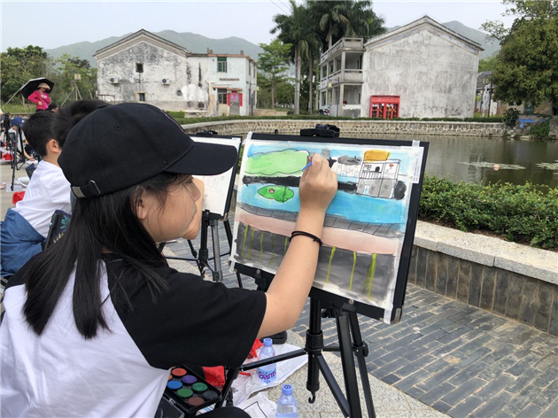 「爸爸,原來我們壩光有一顆500多歲的銀葉樹『爺爺』呀!」「媽媽,老壩光原來有海灘,你和爸爸以前是不是經常在海邊捉螃蟹?」這些稚嫩的對話發生在老壩光鹽灶村的親子戶外寫生課堂上。