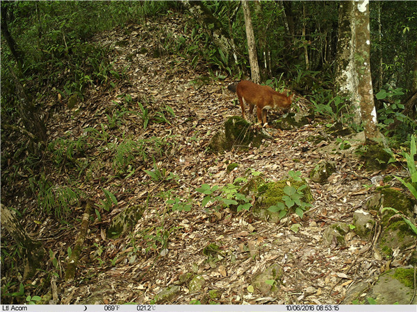 據云南臨滄南滾河國家級自然保護區消息,日前,該自然保護區工作人員在整理今年安放的紅外監測相機數據時,發現拍到國家一級保護動物——紅豺,這是南滾河自然保護區首次拍到紅豺。經過初步判斷,南滾河自然保護區大概有2—3隻紅豺。