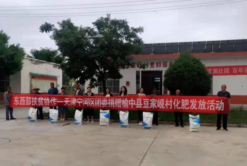 14日,天津市寧河區團委聯合榆中縣團委在甘肃省榆中縣金崖鎮豆家峴村開展化肥捐贈活動,共向老百姓發放大量元素水溶肥料80袋,共計2噸,惠及豆家峴村57戶百姓。