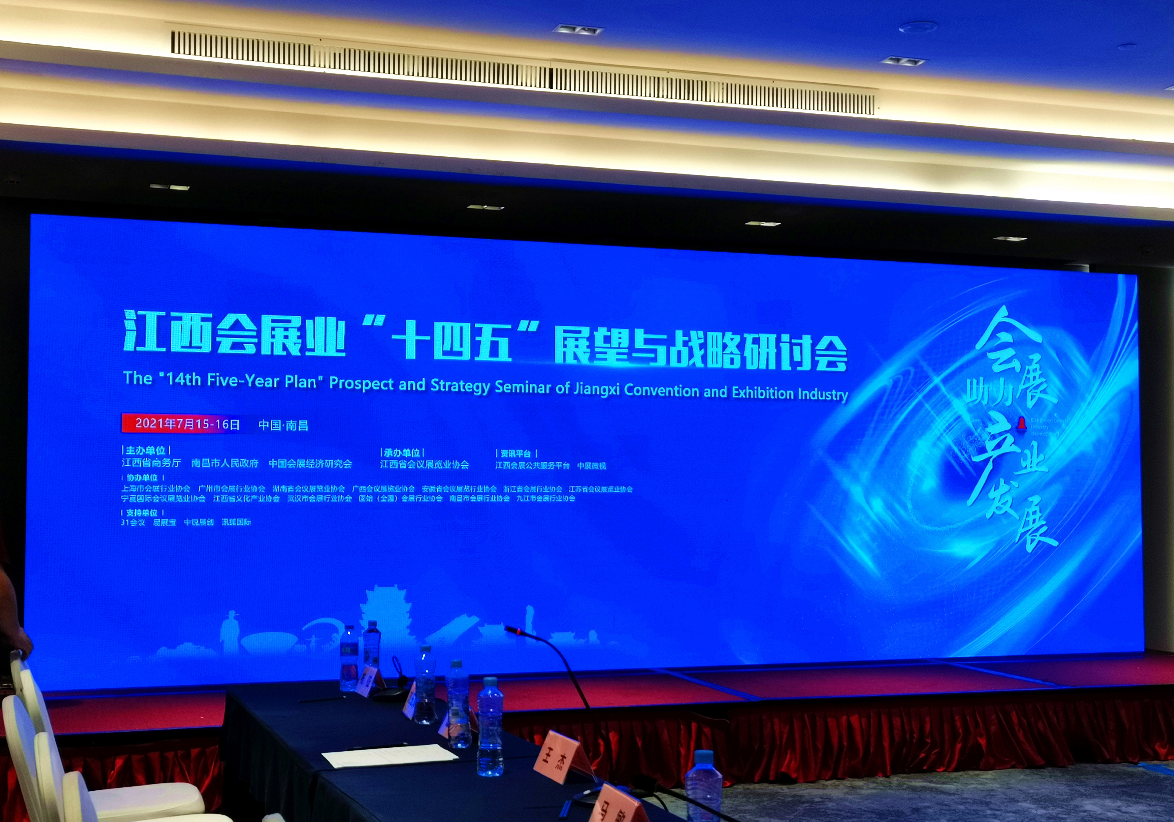 7月15日下午,江西省商務廳組織召開江西會展業「十四五」展望與戰略研討會。江西省商務廳黨組成員、副廳長饒芝新,中國會展經濟研究會會長袁再青、中國會展經濟研究會常務副會長儲祥銀、泛珠三角城市會展聯盟主席李霞輝、廣東省組展企業協會會長劉松萍及江西全省商務主管部門負責人和來自全國的行業知名專家、會展企業代表100餘人齊聚一堂,建言獻策、共謀發展。
