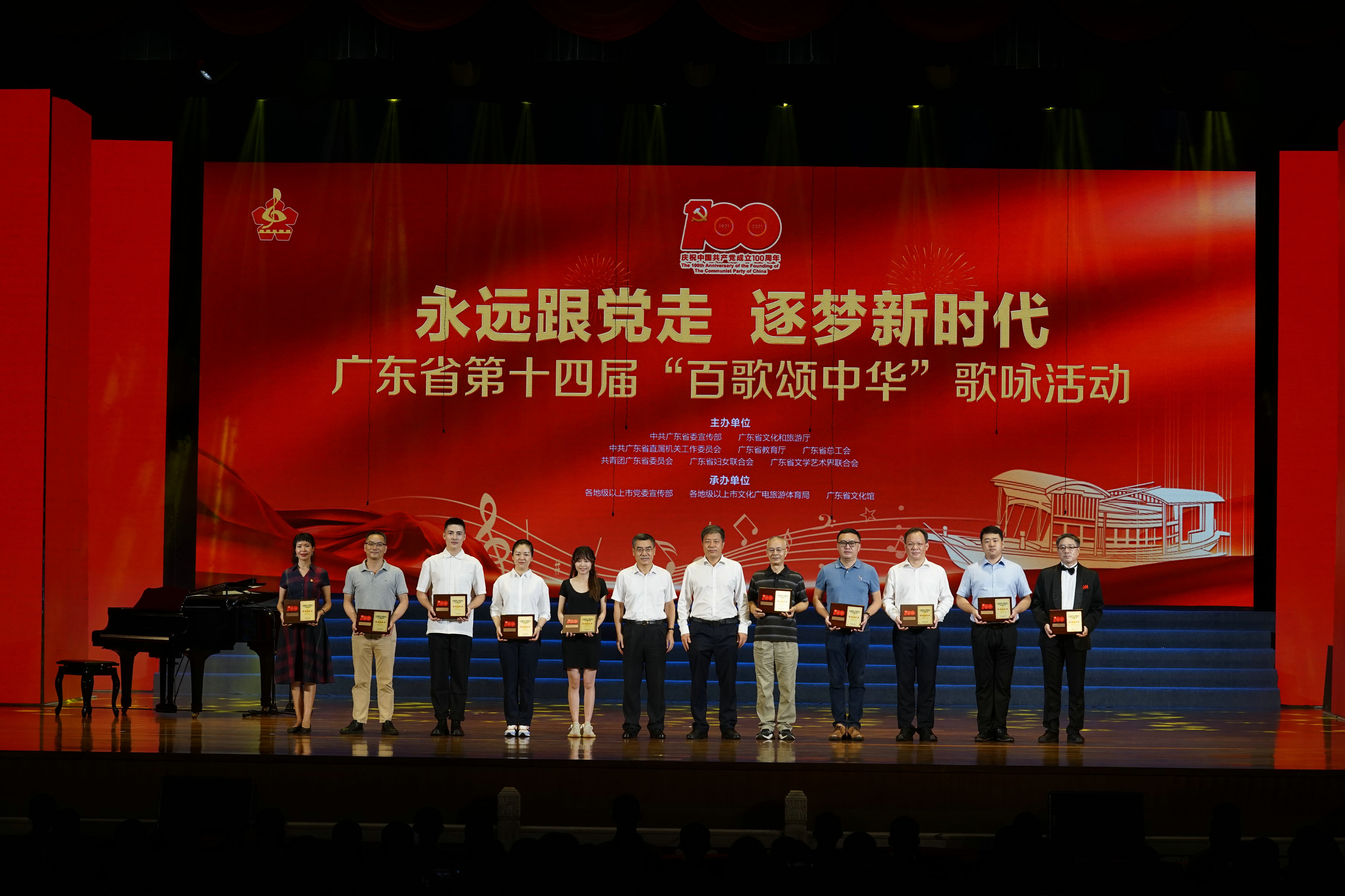 7月16日,活動總決賽分別在廣州友誼劇院、廣東省文化館小劇場舉行,共舉辦合唱比賽2場,歌手(組合)比賽2場。廣東省21個地級以上市、2個省直單位,共30支合唱團隊、42個歌手(組合)同台競逐。大賽經過緊張的角逐和14位省內外專家的評審,共評選出金獎16個、銀獎25個、銅獎31個。廣州市等10個地市(單位)獲得組委會頒發的「組織工作獎」。
