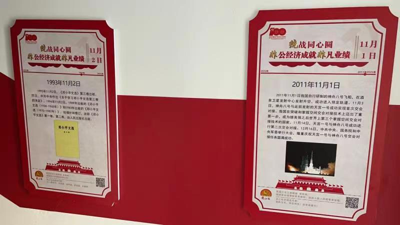 統戰人士黨史學習教育基地樓道圖片展由12家駐區企業負責製作的365張黨史故事圖片組成,在聯盟街道12個單元樓道內展出。每個企業選擇1個月份,根據1921年至2021年期間當月黨史重要事件講述黨史故事,並選擇該月份和企業聯繫緊密的事件撰寫前言。走進樓道,粉刷一新的牆壁,紅白相間的牆面,內容詳實的黨史故事展板,大家好像置身「黨史學習教育」學校。順着樓梯上的小腳印,一個個黨史故事映入眼帘,仔細閱讀每幅展板,不知不覺就走到了頂樓。不時會有居民駐足學習觀看,大家表示,沒想到經過企業和社區的共同努力,昔日的老舊小區樓道能變成現在的樣子,大家上樓的過程還能學習黨史故事,重溫舊日時光,樓道就是「接地氣的課堂」。哈爾濱東安建築工程有限公司董事長麻中新表示,黨史學習教育開展以來,企業員工掀起了黨史學習熱潮,大家紛紛結合企業歷史和中國共產黨黨史建言獻策,黨史故事就這樣在企業員工心中潤物無聲地流淌。可以說,每塊展板都凝聚了員工的力量,在每塊展板里都有員工們對祖國母親和偉大的中國共產黨的美好祝福。