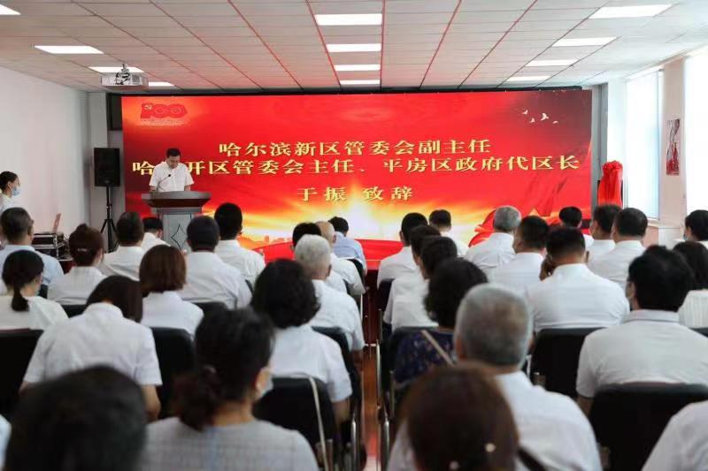 為貫徹落實習近平總書記在慶祝建黨100周年大會上的重要講話精神,用好紅色資源、傳承紅色基因、弘揚革命精神,7月16日下午,哈經開區黨工委、平房區委「一同兩非」活動暨統戰人士黨史學習教育基地揭牌啟動儀式在平房區聯盟街道舉行。哈爾濱市委常委、統戰部部長孫永文,市委黨史學習教育領導小組辦公室副主任孫建偉,平房區各民主黨派、統戰團體代表,12家駐區企業代表等參加活動。