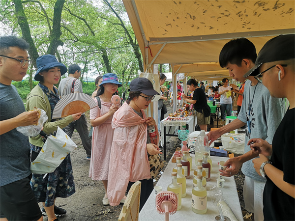 7月17日,安徽黃山市徽州區西溪南徽州市集在西溪南村楓楊林開市,來自杭州、福州、合肥及本地近60個攤主,涵蓋非遺、土產、文創等眾多高顏值個性好物精彩亮相,吸引了不少遊客和本地市民觀光。