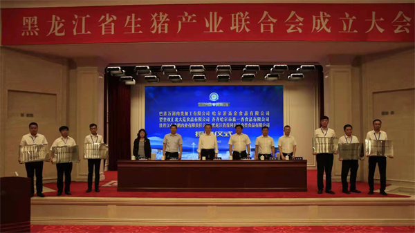記者在黑龍江省農業農村廳獲悉,由省農業農村廳牽頭組織,中國農業科學院哈爾濱獸醫研究所、巴彥萬潤肉類加工有限公司共同發起,經省民政廳批准成立的黑龍江省生豬產業聯合會,於7月16日在哈爾濱召開了成立大會。省委常委、副省長王永康,省委農辦主任、省農業農村廳黨組書記、廳長王兆憲,省民政廳二級巡視員楊曉光,中國建設銀行黑龍江省分行行長張躍雲出席會議。黑龍江省生豬產業聯合會會員單位代表,省內部分金融機構相關領導,浙江、山東等省份肉類協會、屠宰企業代表,阿里巴巴、海康威視等企業集團代表,共計120餘人參加成立大會。