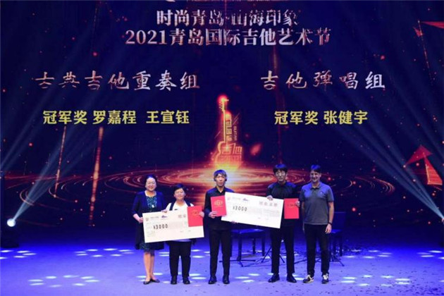 在頒獎典禮過程中,青島市音樂家協會主席王靜怡,國際吉他大師、德國著名演奏家巴斯蒂安·黑德納為羅嘉程、王宣鈺、張健宇分別頒授了古典吉他重奏組、吉他彈唱組冠軍獎項。