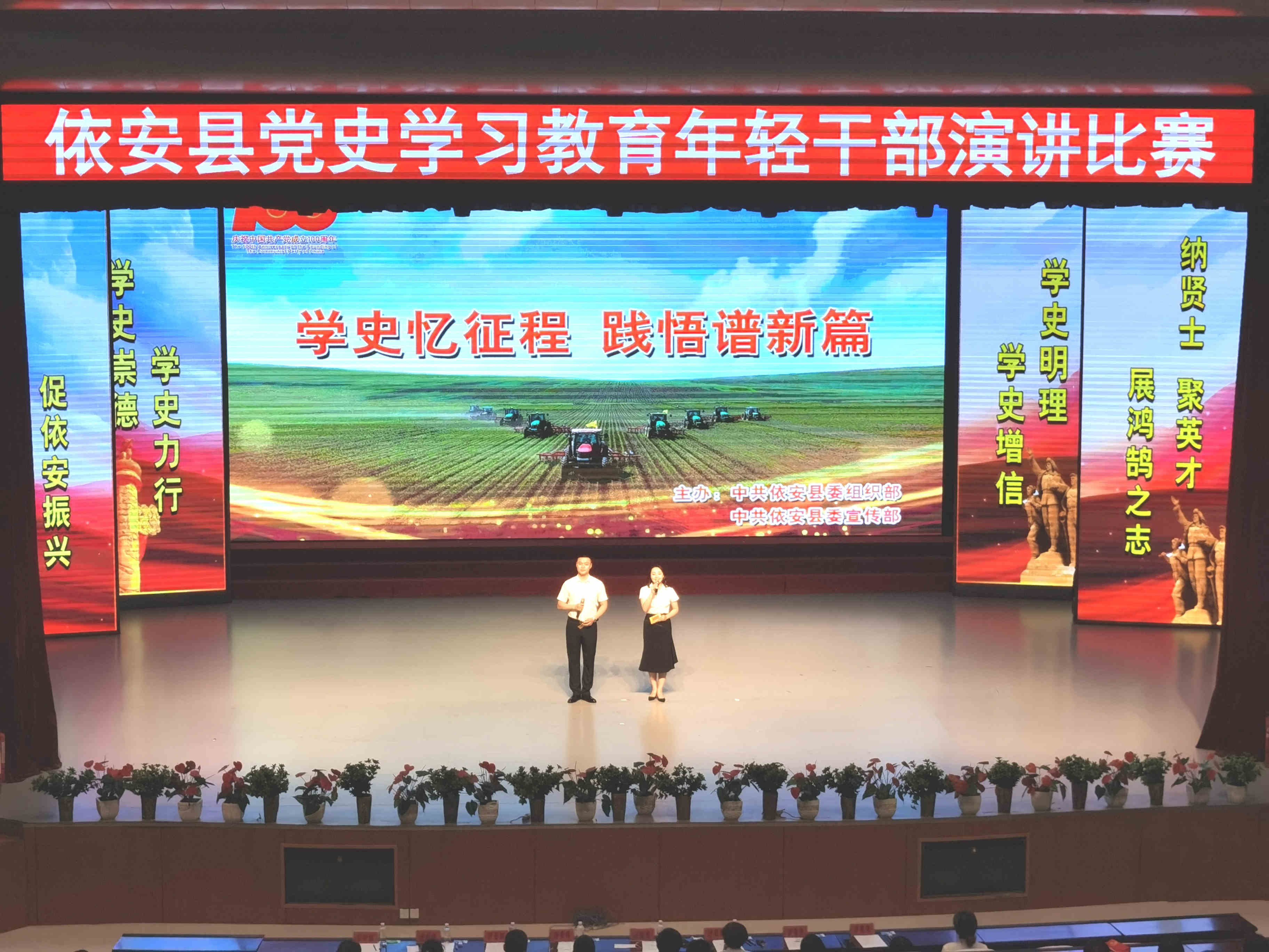 打造學習大賽場,讓黨史學習教育振奮人心。為激發全縣幹部群眾、學生教師學黨史熱情,依安開展了題為「學史憶征程 踐悟譜新篇」為主題的演講比賽,來自全縣各單位的優秀青年幹部在舞台上講述黨的歷史,追尋紅色記憶,展現了依安縣黨員幹部青春飛揚、矢志奉獻的嶄新風貌;全縣黨史學習教育參學單位舉辦了51場黨史學習教育知識競賽,激發全縣黨員幹部群眾比、學、趕、超的學習氛圍,將學黨史、念黨恩、跟黨走的思想在廣大黨員幹部群眾心中落地生根。