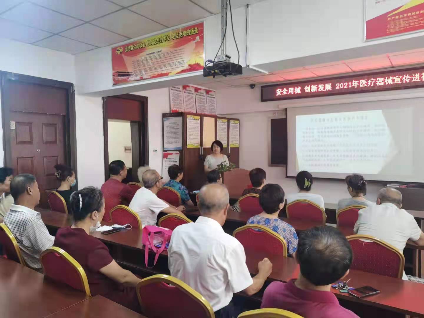 7月22日上午,遼寧省藥監局聯合瀋陽市市場監管局、寶環社區辦事處共同開展了「安全用械進社區」活動。期間,舉辦了「安全用械」大講堂,並發放400餘冊醫療器械健康科普知識讀物及300餘份安全用械宣傳品,向社區居民廣泛宣傳了醫療器械安全知識,糾正使用醫療器械的常見誤區,增進了百姓對安全用械知識的了解,提高了百姓鑑別醫療器械產品和合理用械守護健康的能力,受到社區和居民的熱情參與一致好評。