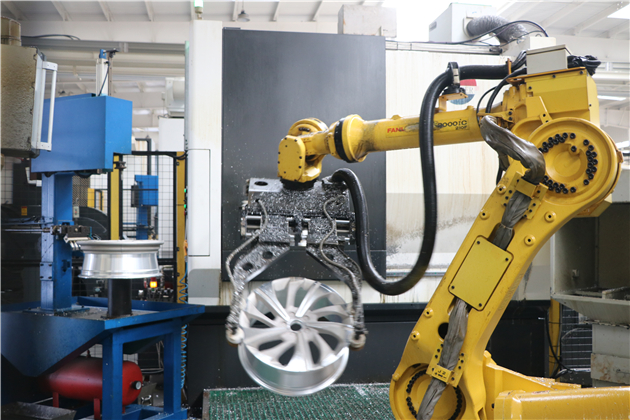 記者在生產車間看到,炎炎夏日,繁忙的流水線上見不到幾個工人,取而代之的是機械臂和機械人在自動鑄造、加工噴塗。高度的智能化,讓這裏全部建成投產後的年產鋁車輪量將達到2000萬隻,成為僅次於總部產能的製造基地。