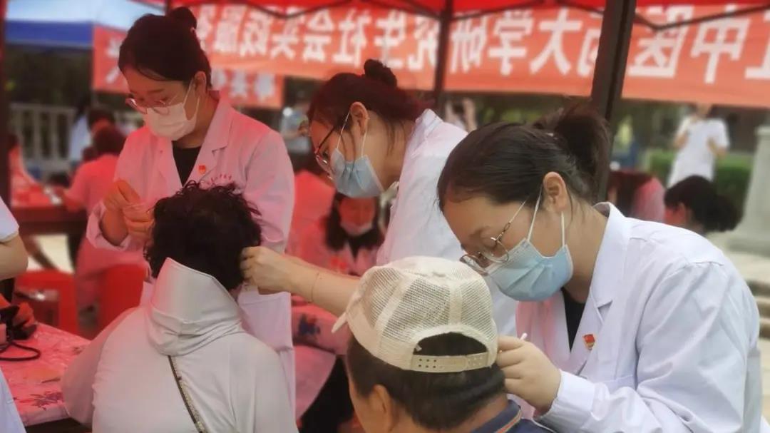 研究生志願者為居民進行耳穴壓豆