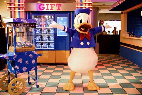 主題展還帶來多重驚喜。復古爆米花機以格調視覺、玩趣互動完美融合,帶來獨特深刻記憶。美國風復古膠片點唱機則變身幸運盲盒裝置,按鍵隨機獲得盲盒掉落,獲得元氣雪糕系列唐老鴨玩偶、鑰匙掛件、迪士尼貼紙等正版迪士尼爆款商品。
