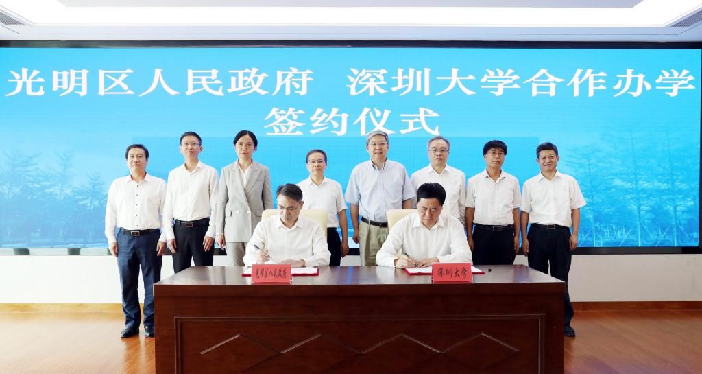 7月26日上午,深圳市光明區人民政府和深圳大學舉行了合作辦學簽約儀式。深圳大學黨委書記、校長李清泉,光明區委書記劉勝,區委副書記、區長蔡穎等出席。