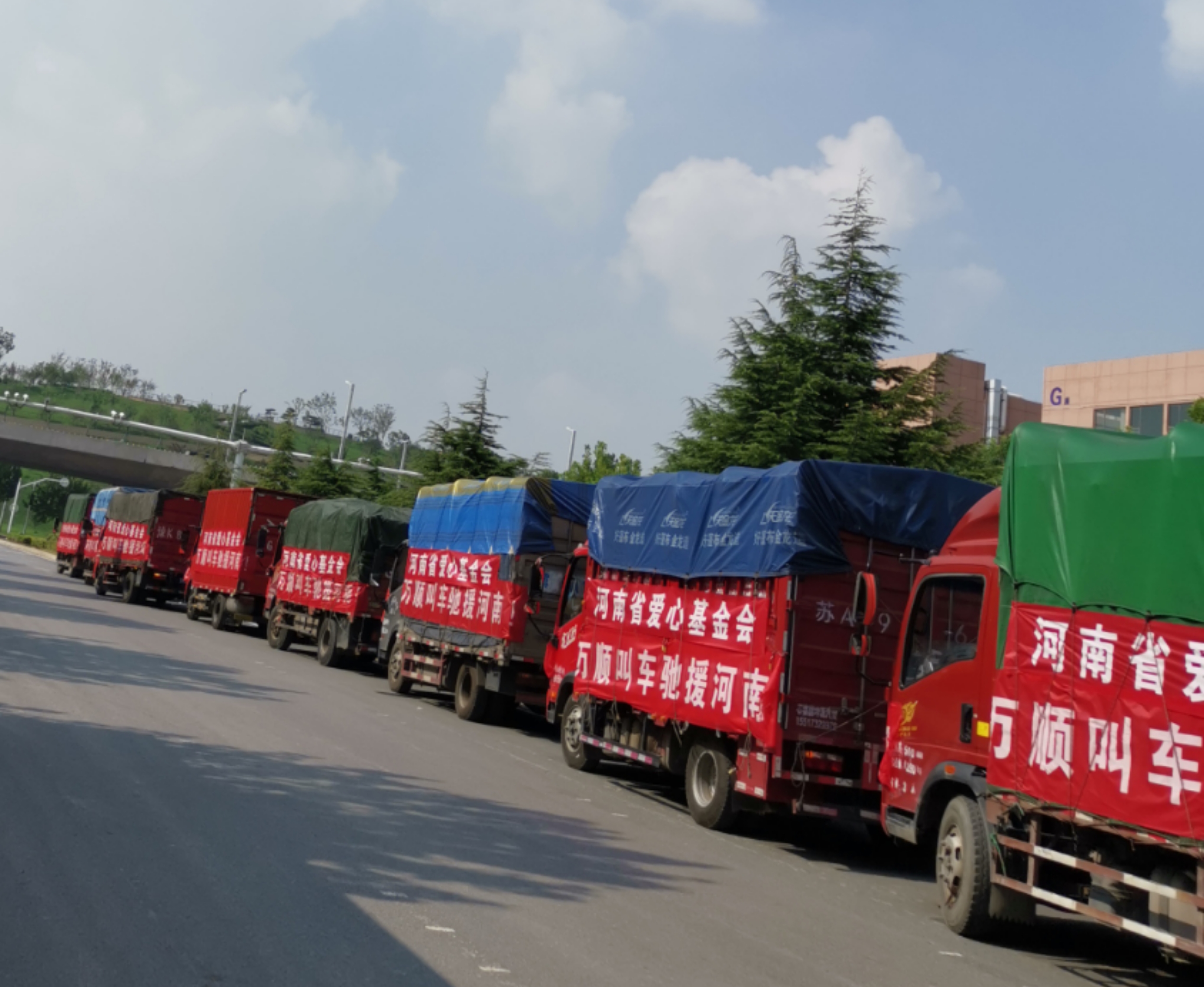 7月23日晚,萬順叫車從湖北整倉調運了十二卡車共計320000支專用瓶裝水,並在25日上午九點在鄭州與河南省愛心基金會交接清驗後,由分公司主要負責人與志願者帶隊兵分十路開赴捐贈受災最嚴重的轄區和基層組織,把物資送到群眾身邊。輝縣漁村一個災民家十四歲的孩子感動於這份來自於社會的愛心,激動的對記者說:俺今後要好好學習,長大後也早像你們一樣幫助有困難的人。