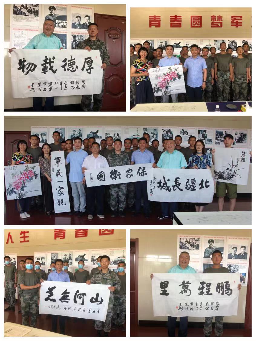 書畫家們現場創作,為官兵題字,把對戰士們的深厚情誼和無限敬意傾注在了筆墨之間,「軍民一家親,邊關衛士,青春無悔,夢圓軍旅,山河無恙……」一幅幅精美的書法、繪畫作品頃刻而成,呈現在連隊官兵面前,歌頌了官兵保家衛國、忠誠奉獻的家國情懷,深受戰士們的喜愛。