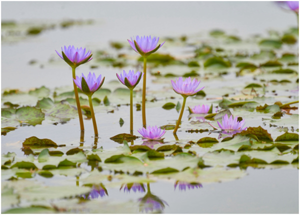 蚌埠韻蓮荷花園內藍蓮花盛開