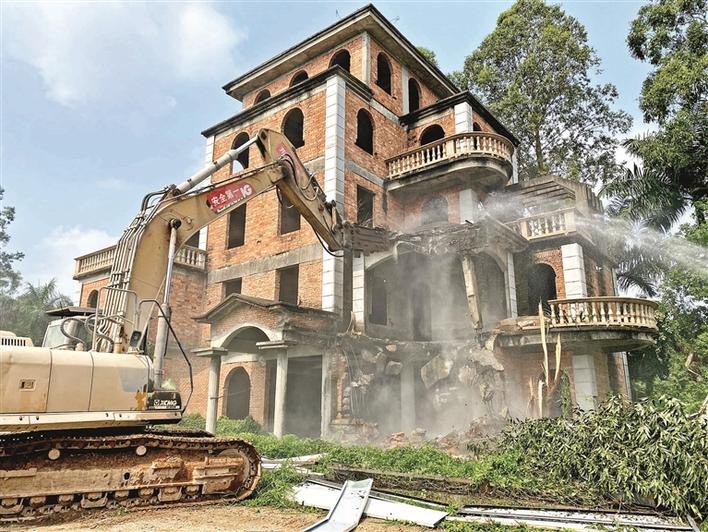 拆除黎光社區老圍538號前一處高11層的控停違法建築,拆除面積2099平方米。