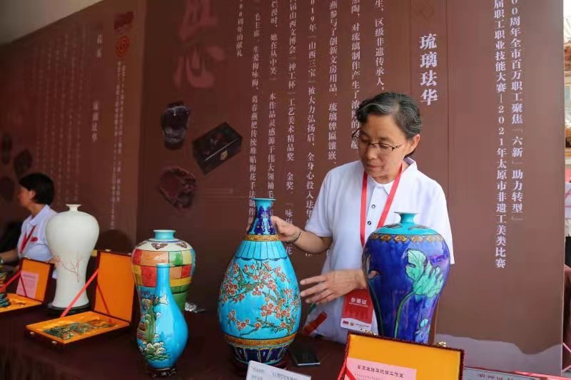 晉源區總工會副主席王麗介紹,大賽自6月25日啟動,通過15場預賽選拔出41名優秀選手進入決賽。參賽項目涵蓋剪紙、刺繡、雕塑、麵塑、版畫、繩編、陶藝、刻瓷等類別。另有8名往屆「晉陽工匠」也積極參賽展示。