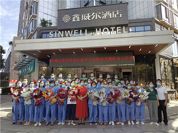 7月28日,四川省綿陽市涪城區為綿陽各縣市區援涪醫療隊分別舉行了隆重而簡樸的歡送儀式,送別集中離涪的醫療隊。心懷感恩話離別,向抗疫一線的「白衣天使」們表示感謝,向守護群眾健康的英雄們致敬。