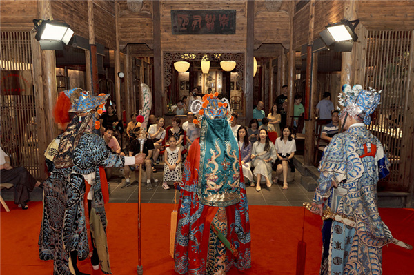 7月31日,在黟縣拾庭畫驛民宿中,《紅線盜盒》《天女散花》《扈家莊》《水淹七軍》等節目依次上演,引得圍觀的住客和村民紛紛鼓掌叫好。據瞭解,此次演出,拾庭畫驛積極主動與黃山市徽劇院相關專家洽談,將徽劇戲班請進民宿。「下一步,我們將把徽劇演出作為常態化活動,豐富民宿入住體驗感,打造民宿獨有品牌特色。」拾庭畫驛負責人黃智勇介紹。