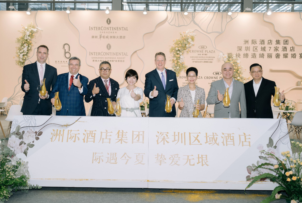 深圳華僑城洲際大酒店總經理兼洲際酒店集團深圳、東莞及澳門地區區域總經理馬夢楷先生、洲際集團華南區市場銷售運營經理呂南女士攜七家酒店總經理齊聚婚博會的展台現場。馬夢楷介紹:「洲際酒店集團秉承着『以善為本,以誠待客』的標準理念,延續品牌的歷史傳承,旗下酒店皆致力於打造奢華、獨具特色的主題婚典,一站式的定製服務,讓每一個非凡時刻定格成為新人的專屬回憶」。