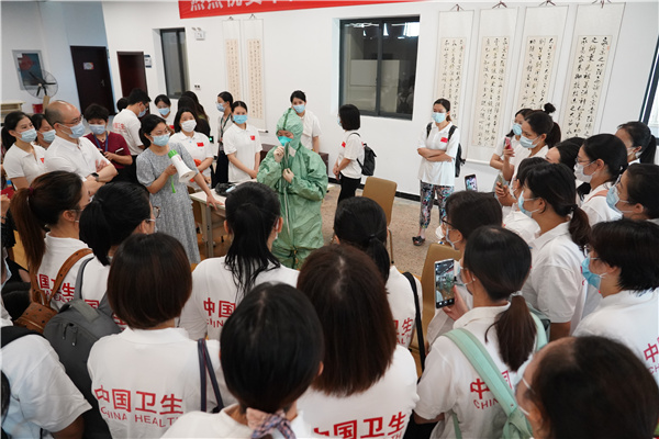 8月4日清晨,由1名醫生和49名護士組成的中南大學湘雅醫院核酸檢測採樣醫療隊支援張家界市開展全員核酸檢測採樣工作。隊員們均熟練掌握核酸檢測採樣操作,既有4名援鄂抗疫隊員,也有參加過汶川地震應急救援的,還有很多來自呼吸、感染等重點科室的、有着豐富核酸採樣經驗的人員,隊伍中一半為中共黨員。