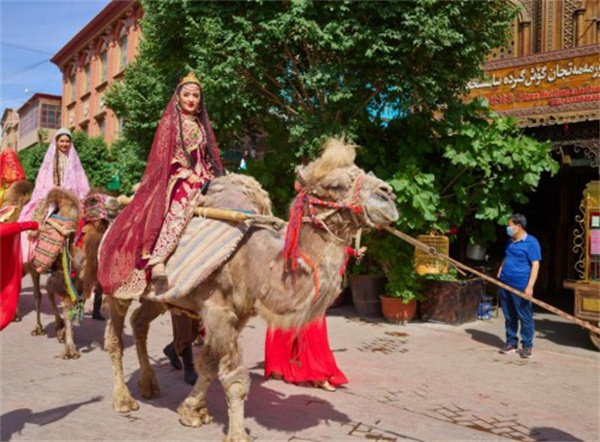 民族特有的婚禮,美麗的新娘騎着駱駝