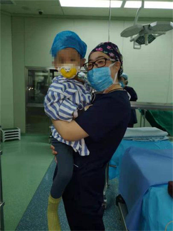 在哈爾濱市第一醫院手術室,一個五歲的小姑娘極為恐懼的哭着喊着找媽媽,煩躁不安的小患者使這台手術陷入了僵局。此時麻醉醫生殷媛急忙迎了上去,抱起孩子「哄」了起來,但孩子還是不停的哭鬧,充滿愛心和智慧的殷媛靈機一動,她將手術手套兒吹成一個胖胖的手掌形狀,然後把要往注射器上標識的記號筆拿給孩子,叫她在上面畫,瞬間小姑娘就開心了,麻醉和手術得以順利進行。