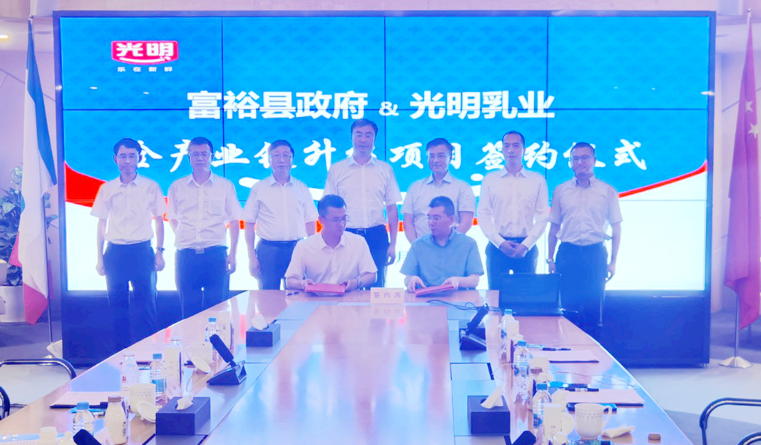 「上海光明乳業與富裕縣25年的緊密合作,奠定了雙方合作的基石,歡迎繼續到齊齊哈爾投資興業。」齊齊哈爾市委副書記、市長王剛在講話中表示,齊齊哈爾市將在項目用地等要素保障上,大力扶持、支持企業發展。同時,希望上海光明乳業站在新時代新高度,發揮旗下品牌優勢、資源優勢,在農副產品加工、產業鏈延伸上開展更廣泛的合作。