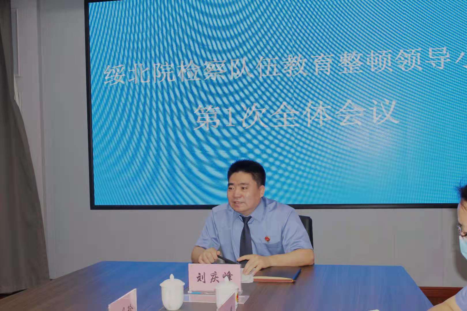 為學習貫徹省委、高檢院、省院、分院第二批政法隊伍教育整頓動員部署會議精神,確保綏北人民檢察院檢察隊伍教育整頓各項任務落到實處、取得實效,8月18日上午,綏北人民檢察院檢察隊伍教育整頓領導小組組長、院黨組書記、檢察長劉慶峰主持召開綏北人民檢察院檢察隊伍教育整頓領導小組第一次會議並講話。
