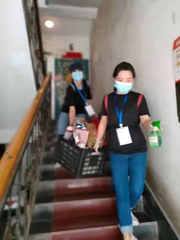 同時,隊員們還將自己為居家隔離者上門服務的經驗、體會及時總結成「上門五步工作法」(頂住門敲門溝通,工作人員離開一段距離,隔離戶開門取物品、放垃圾,對空氣進行消殺、給垃圾等消毒,貼封條後離開),與更多的防疫隊員分享,盡可能地減少被感染風險。