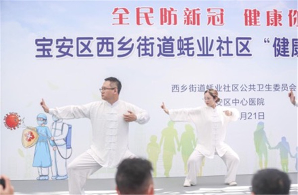 活動中,蚝業社區的健康模範居民代表趙春燕為大家分享她的健康生活方式。趙阿姨領銜的「海語西灣健身隊」和寶安區中心醫院全科中醫團隊分別展示了健身操和八段錦。一柔一剛一靜一動的表演,向居民朋友傳遞不同健身活動及方式帶來的快樂和健康,倡導「每個人是自己健康的第一責任人」。